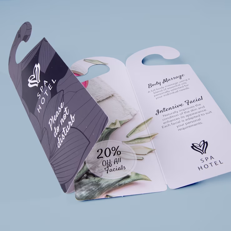 Of het nu is om gasten een rustige nacht te gunnen of een boodschap subtiel over te brengen. Perfect voor hotels, B&B’s, evenementen of promotionele acties. Laat jouw deurhangers enkel- of dubbelzijdig in full color bedrukken met je eigen ontwerp, logo of tekst. Voor extra stevigheid kun je kiezen voor een scheurvast laminaat, zodat ze langer meegaan, ook bij veelvuldig gebruik.