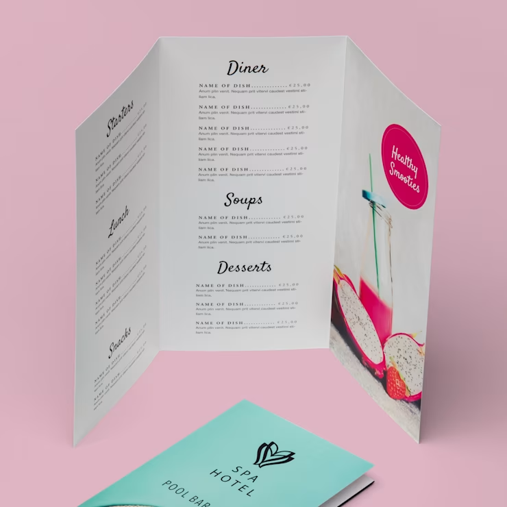 Geef je gasten een duidelijke, stijlvolle en uitnodigende menukaart. Bestel vandaag nog jouw menukaarten en combineer functionaliteit met professionele uitstraling!