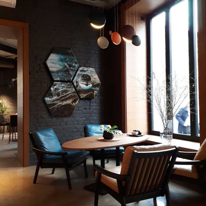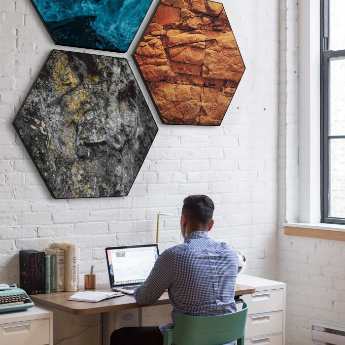 AcousticPro Hexagons zijn akoestische zeshoekige panelen die geluid dempen én een visuele impact maken met jouw eigen full-color print. Deze panelen combineren functionele geluidsabsorptie met een stijlvolle, gepersonaliseerde wanddecoratie, waardoor ze perfect zijn voor ruimtes waar zowel akoestiek als uitstraling belangrijk zijn, zoals kantoren, horeca of ontmoetingsruimtes. De robuuste panelen zijn licht van gewicht, eenvoudig te monteren en beschikbaar in diverse formaten.